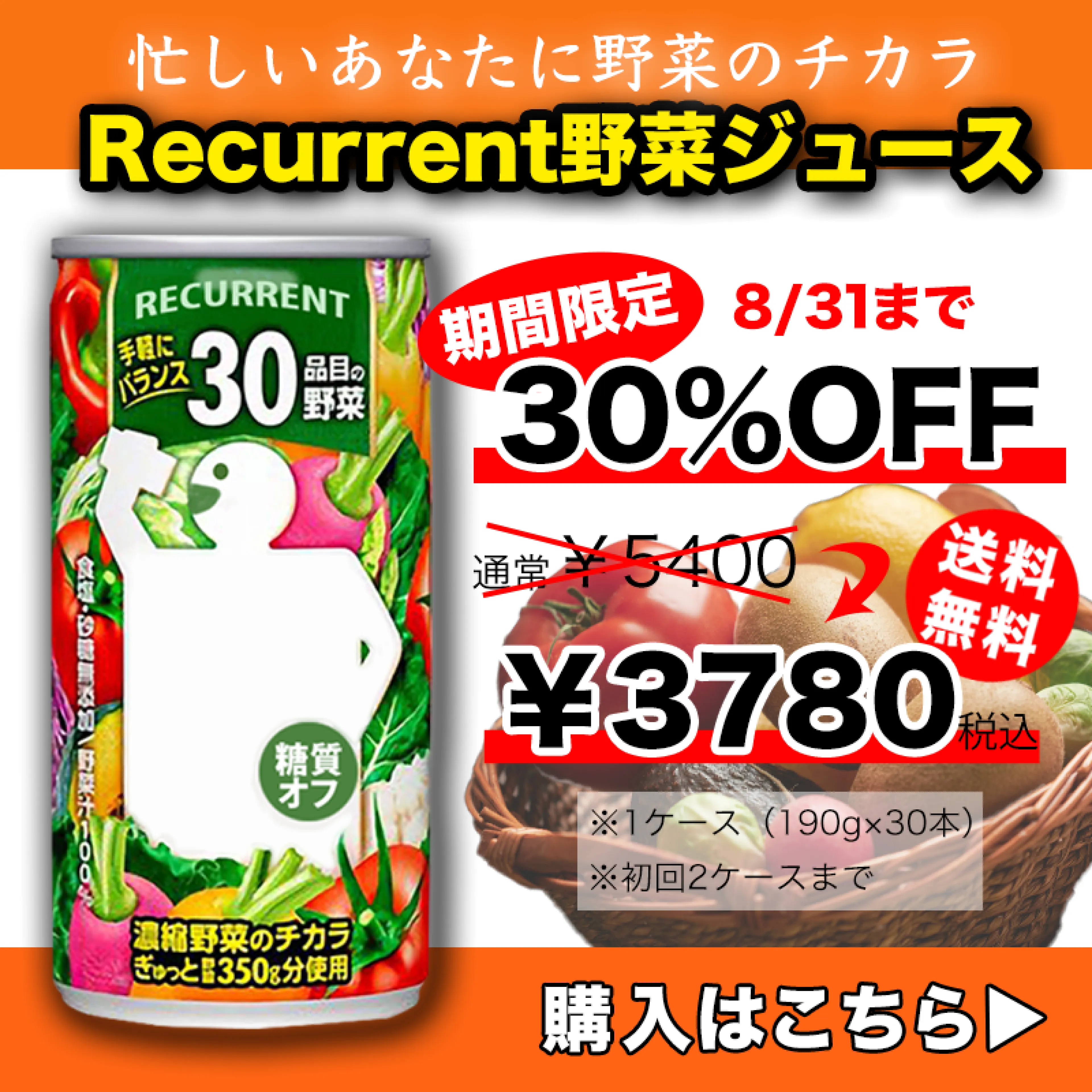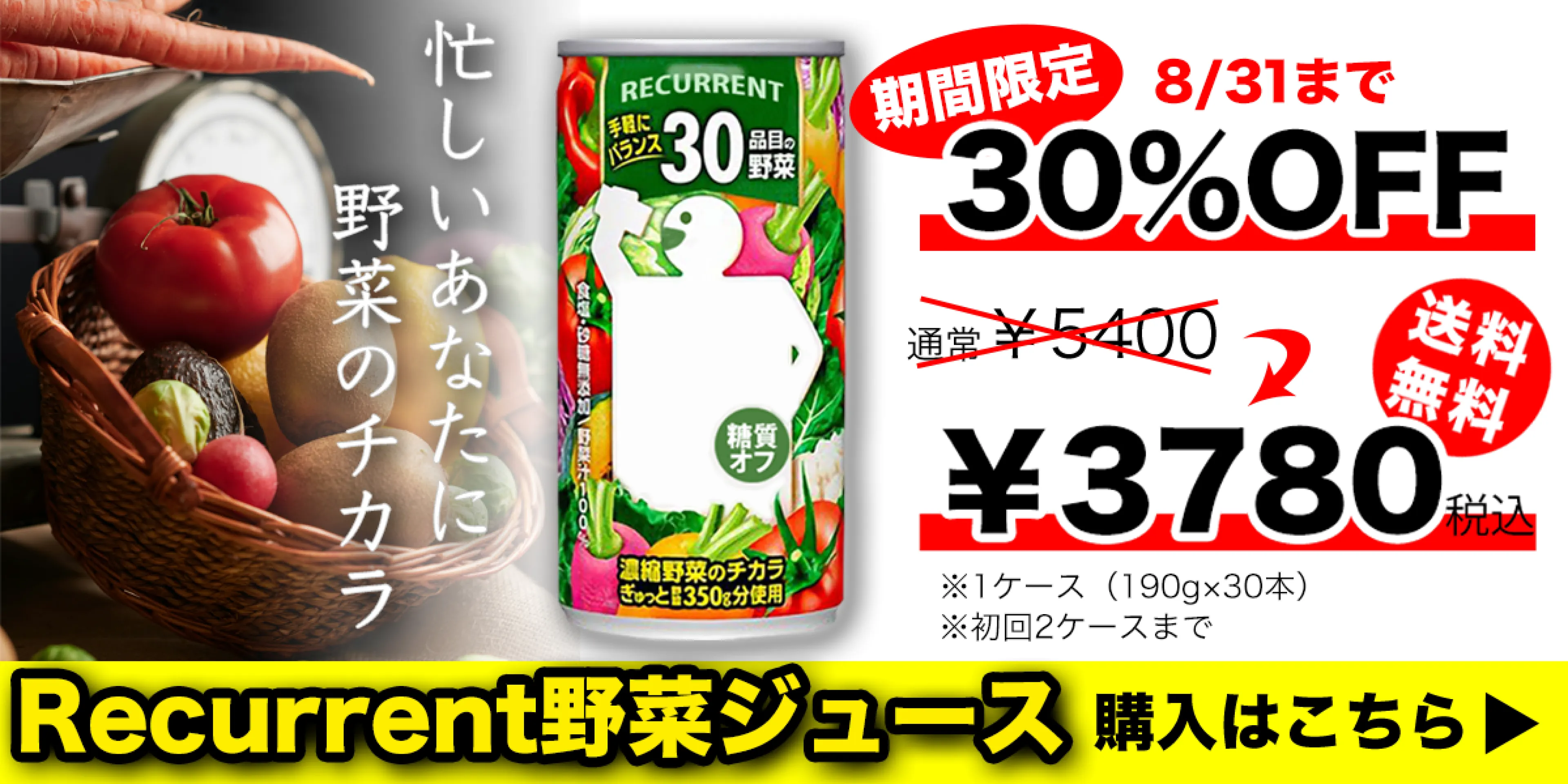 30〜50代の働く忙しい世代に向けた、手軽に野菜が摂れるジュースのバナー。