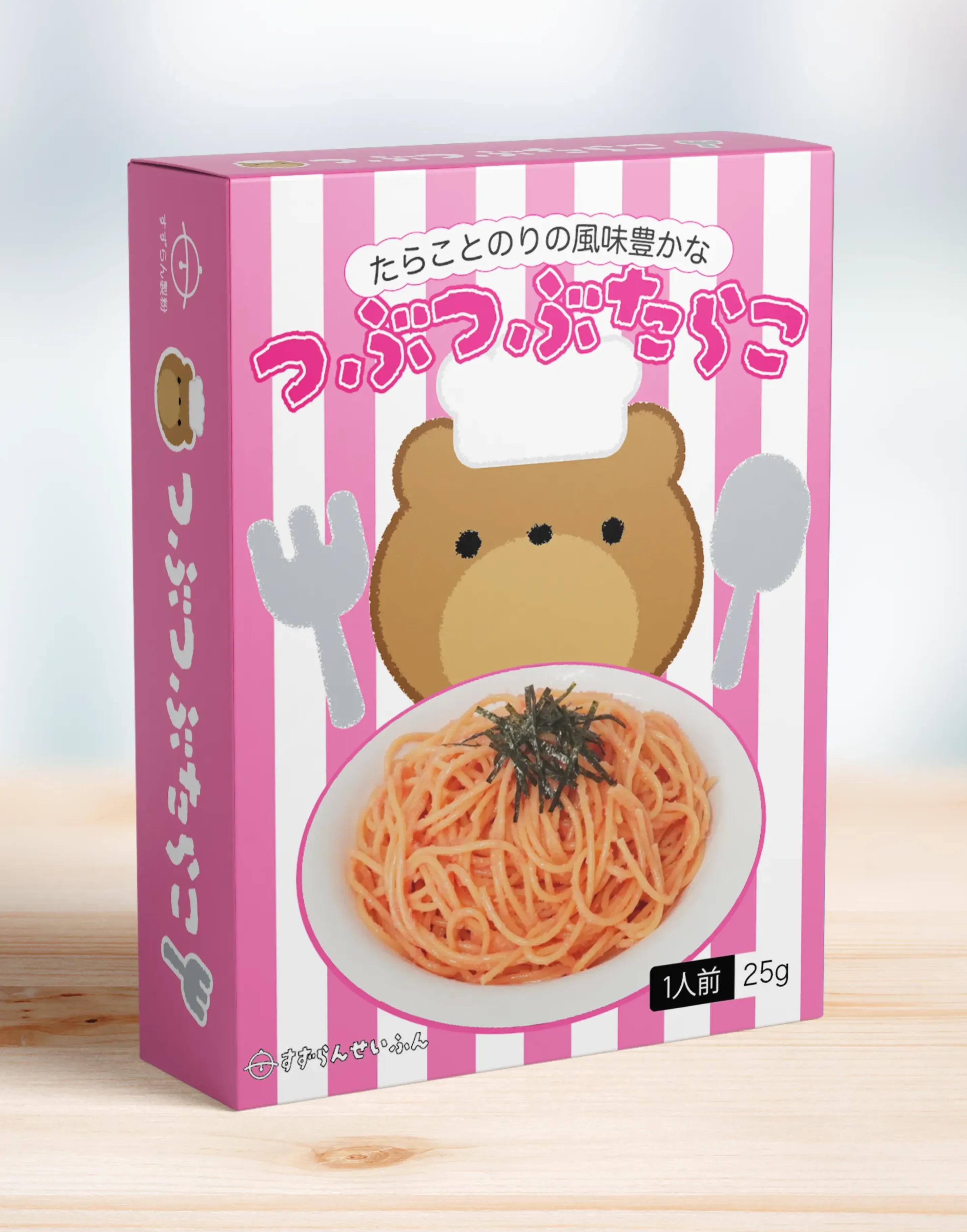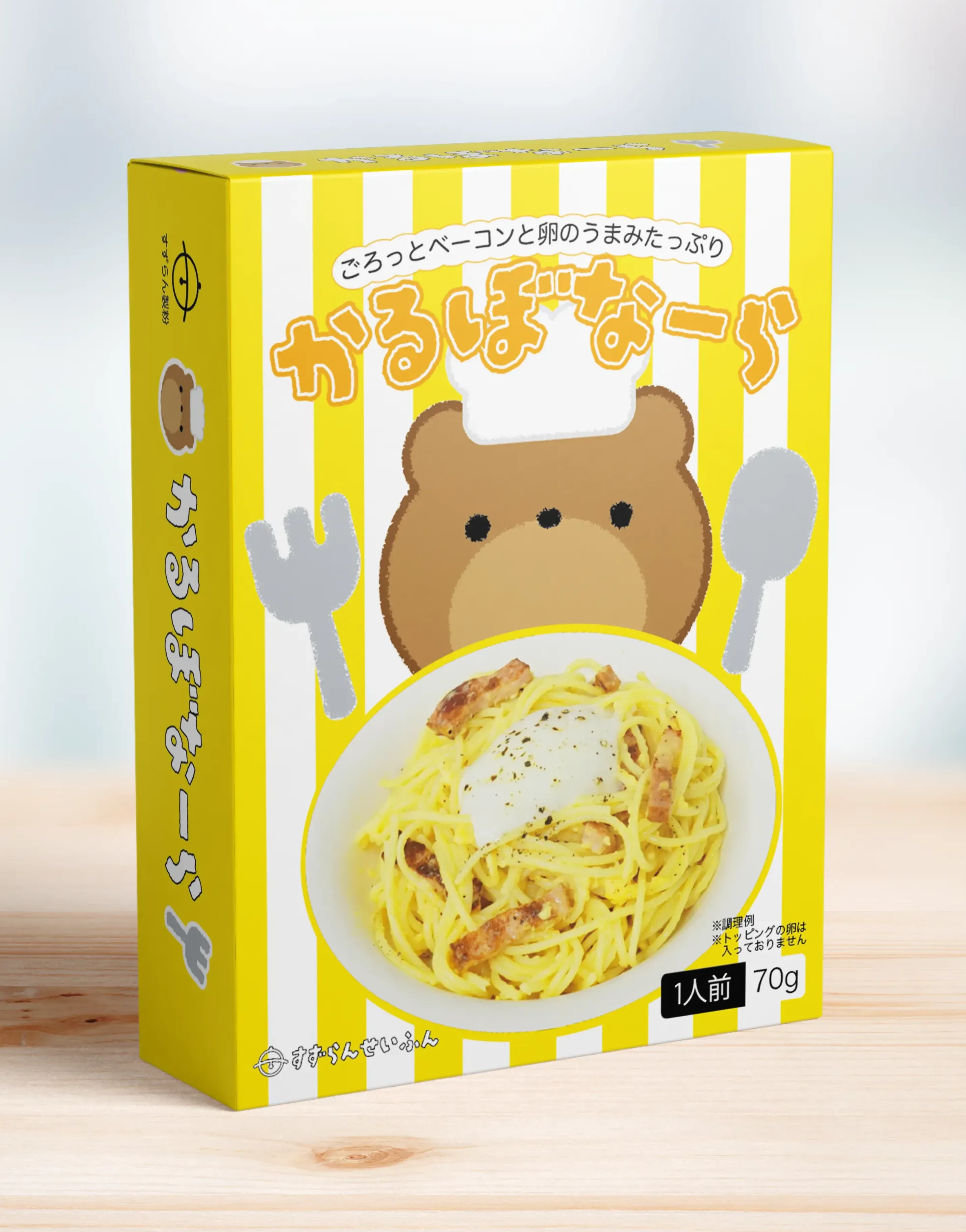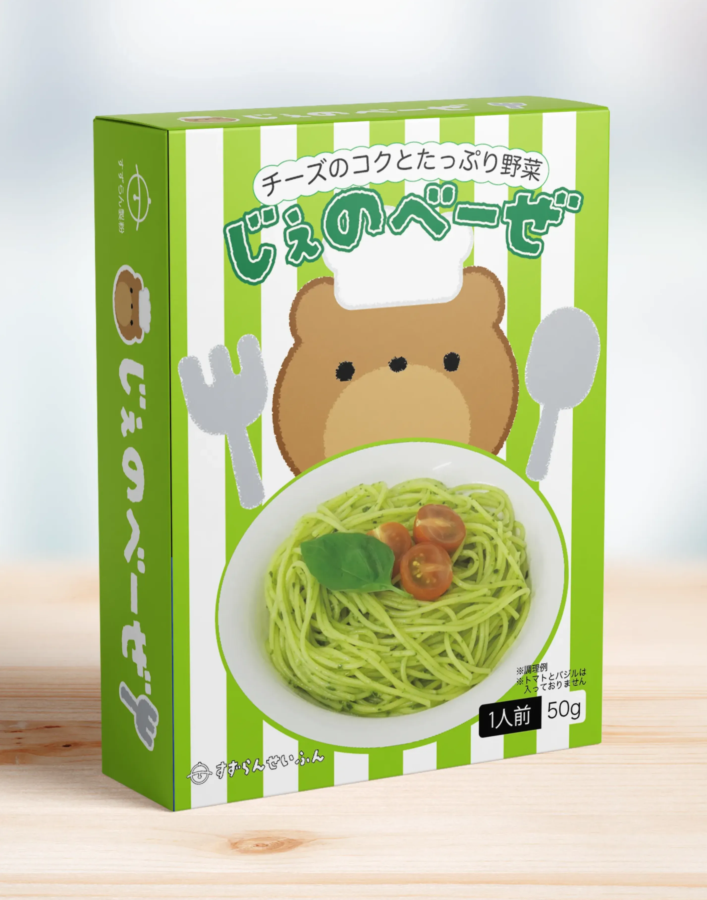 ミートソース、カルボナーラ、ジェノベーゼ、たらこの4種類のパッケージを作成しました。
