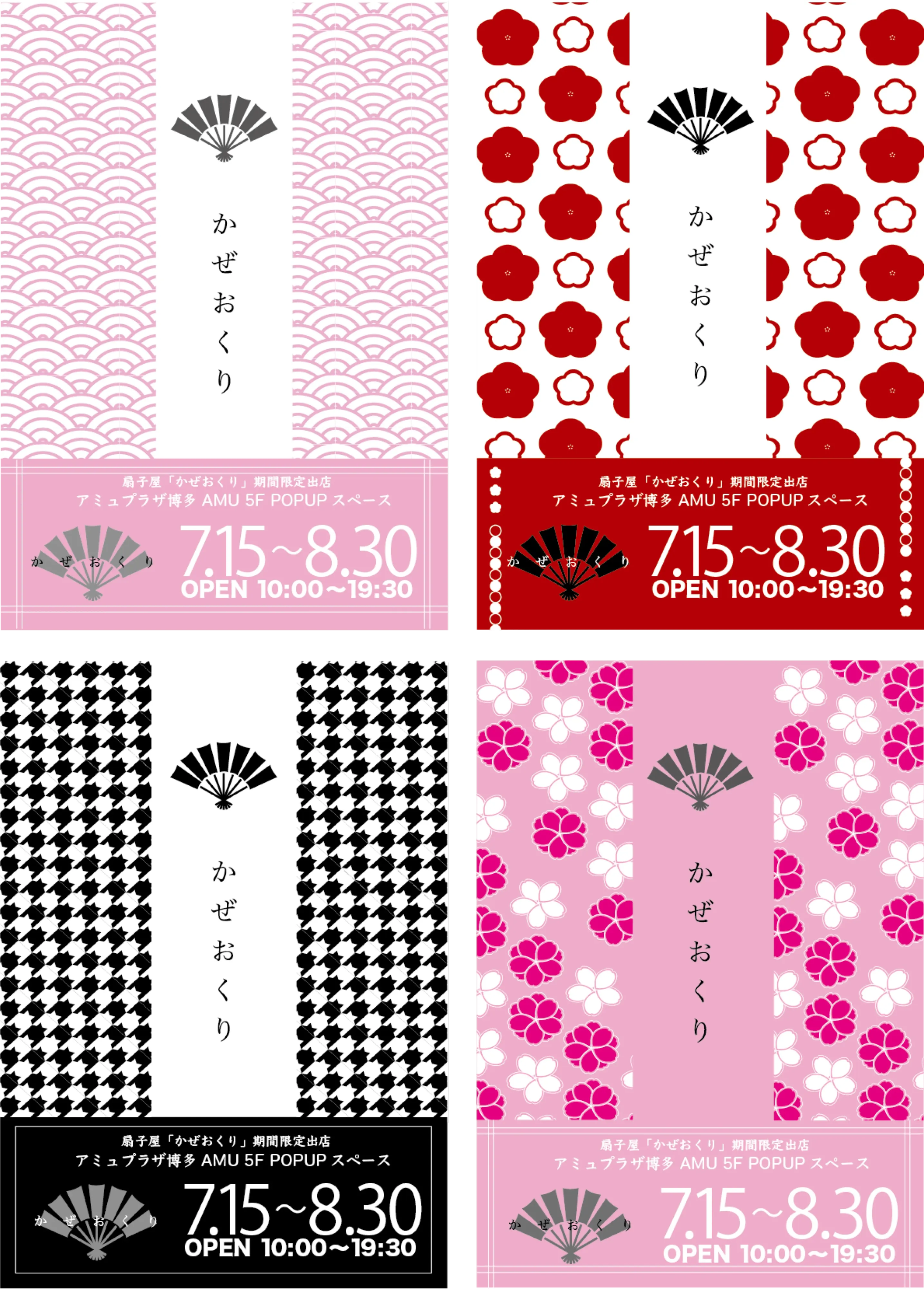 複数のポスターに加え、入場特典のポストカード、その他のグッズの一覧表を作成しました。最も力を入れたのは、和柄のパターン作成です。また、あしらいも和要素を入れました。